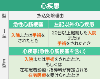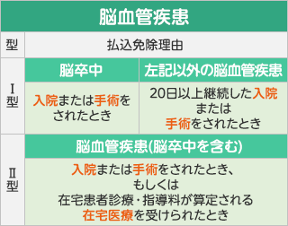 - 心疾患、脳血管疾患による1日以上の入院でお払込みを免除します(Ⅱ型の場合)。