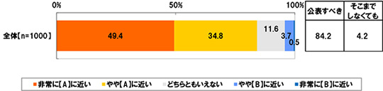 【A】公表すべき【B】そこまでしなくても(単一回答形式)
